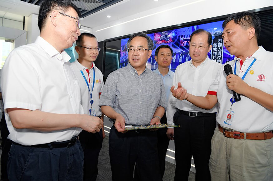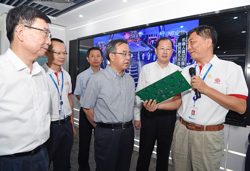 2017年7月29日上午,中央政治局委员、广东省委书记胡春华在广东省委副书记、广州市委书记任学峰、广东省委秘书长江凌、副省长黄宁生等领导陪同下赴广州市企业调研,米兰电竞(集团)智能科技有限公司官网作为被调研企业之一,公司董事长孙超向胡春华书记介绍了公司的发展历程,研发中心总经理朱勇杰介绍了公司自主研发的专用高性能计算平台这一核心技术的研发历程、国内外的行业地位、发展前景等。